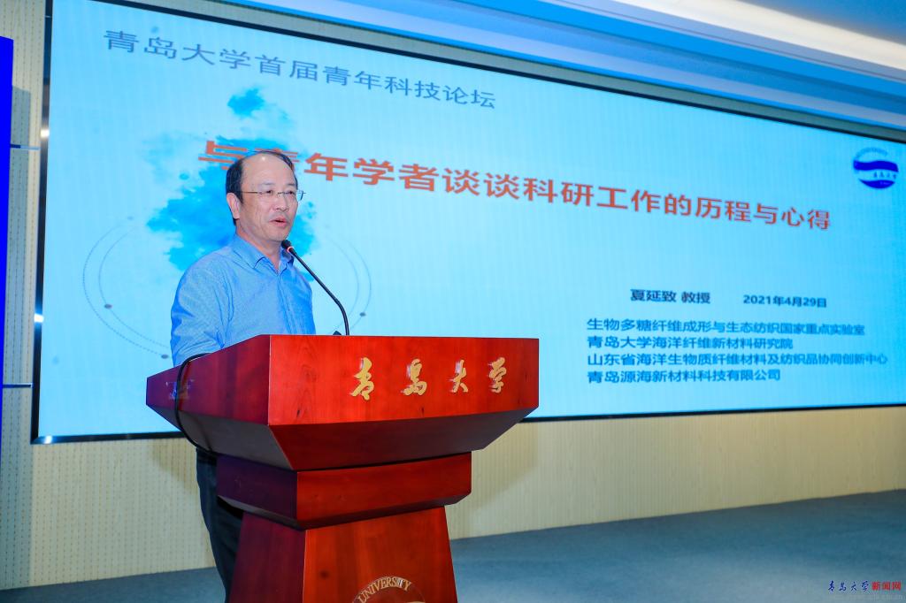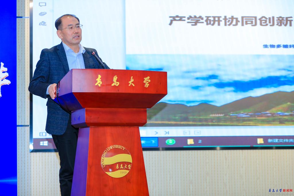 論壇上,學校附屬醫院院長、國家科技進步二等獎獲得者董蒨教授圍繞“校企深度融合、開創醫學發展新篇章”作了主題演講。國家重點實驗室主任、青島大學首席專家、國家杰出青年科學基金獲得者夏延致教授作“聚焦海洋新材料、深耕學科交叉融合”的主題演講。國家重點實驗室副主任、國家“百千萬人才工程”人才房寬峻教授作“潛心產學研合作,賦能傳統行業創新發展”主題演講。