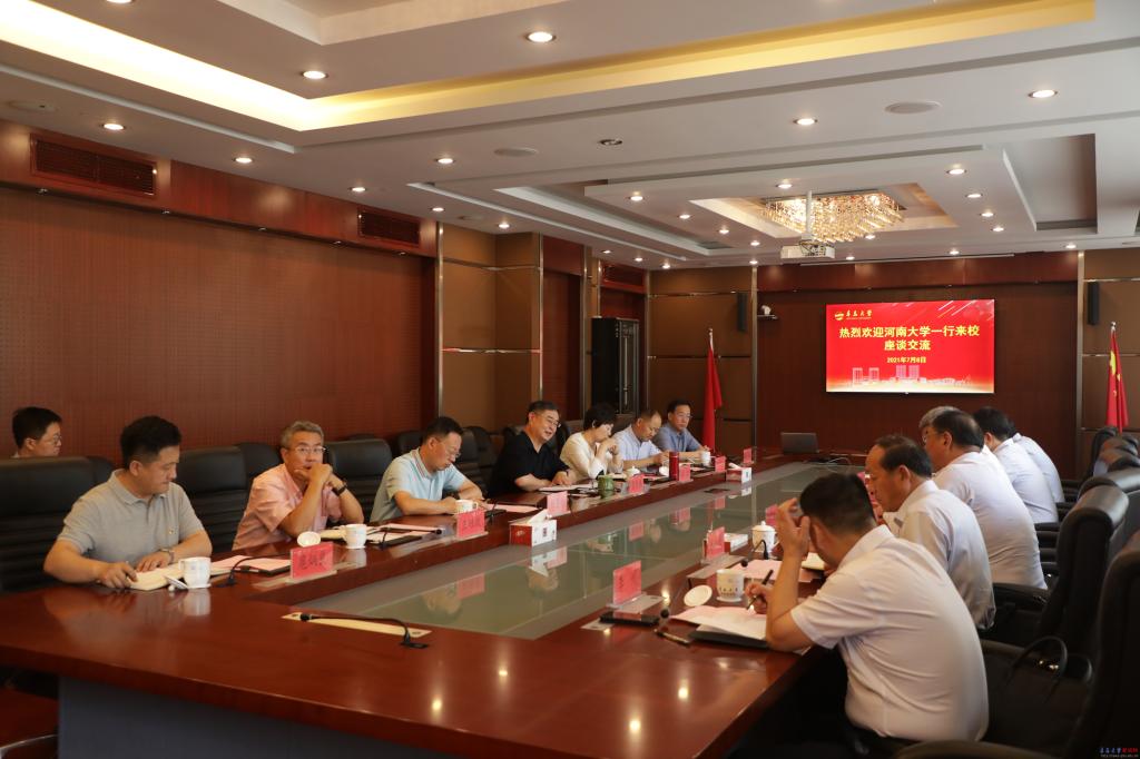新聞網(wǎng)訊 7月8日上午,河南大學黨委書記盧克平一行來訪我校。校長夏東偉在辦公樓第五會議室會見并座談,校黨委常委、副校長、醫(yī)學部部長姜宏主持座談會。