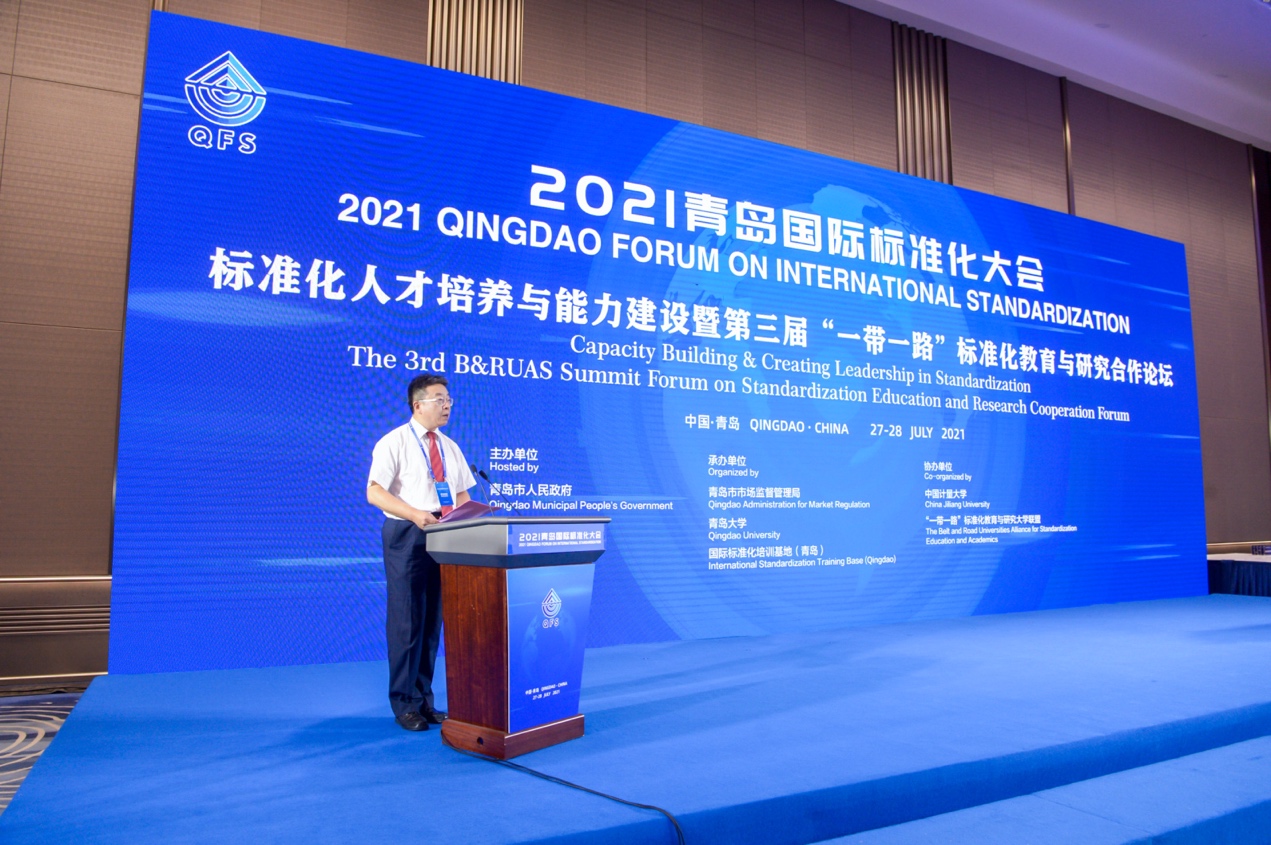 新聞網訊 7月28日,由山東省人民政府、市場監管總局(國家標準委)聯合主辦的2021青島國際標準化大會在青島國際會議中心順利召開,我校黨委書記胡金焱出席會議并在標準化人才培養與能力建設暨“一帶一路”標準化教育與研究合作論壇(以下簡稱專題分會三)致辭。
