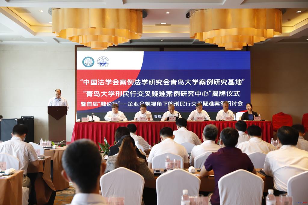 新聞網訊 9月18日,中國法學會案例法學研究會首個專業性案例研究基地落戶青島大學,基地揭牌儀式暨首屆“融論壇”——企業合規視角下的刑民行交叉疑難案例研討會在青島海景花園酒店會議中心舉行。青島大學校長夏東偉出席并致辭。中國法學會案例法學研究會會長胡云騰,最高人民法院行政審判庭原庭長、國家法官學院原院長黃永維,中國法學會案例法學研究會秘書長梁欣,青島市中級人民法院黨組書記、院長、一級高級法官李方民,青島市人民檢察院黨組成員、檢委會專職委員、二級高級檢察官孫友昌,青島市司法局黨組書記、局長萬振東受邀參加揭牌儀式并致辭。儀式由青島大學黨委常委、副校長孔偉金主持。