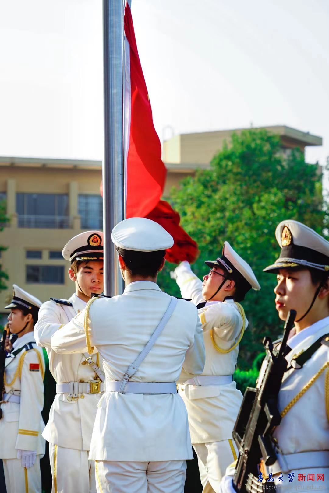 新聞網(wǎng)訊 9月30日上午7時,我校在浮山校區(qū)和金家?guī)X校區(qū)同時舉行“請黨放心,強國有我”2021年國慶節(jié)主題升旗儀式。校領(lǐng)導(dǎo)杜方波、吳世珍參加浮山校區(qū)升旗儀式,校團(tuán)委書記馬林剛主持儀式。