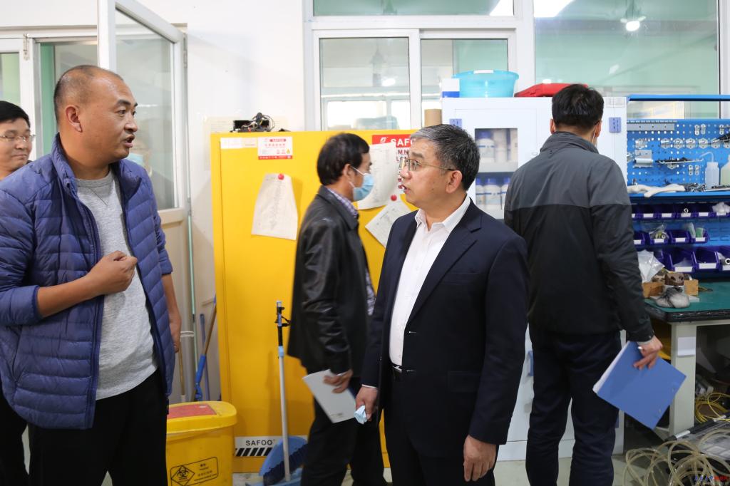 胡金焱一行重點(diǎn)檢查了醫(yī)學(xué)部藥學(xué)院的藥化實(shí)驗(yàn)室、生藥與天然藥化實(shí)驗(yàn)室,物理科學(xué)學(xué)院的博觀樓科研實(shí)驗(yàn)室,生物多糖纖維成形與生態(tài)紡織國家重點(diǎn)實(shí)驗(yàn)室,以及生物醫(yī)用材料與工程研究院、高性能固體電解質(zhì)與固態(tài)鋰電池工程研究中心、能源與環(huán)境材料研究院、非織造材料與產(chǎn)業(yè)用紡織品創(chuàng)新研究院、電動(dòng)汽車智能化動(dòng)力集成技術(shù)國家地方聯(lián)合工程技術(shù)中心等科研機(jī)構(gòu)的實(shí)驗(yàn)室。