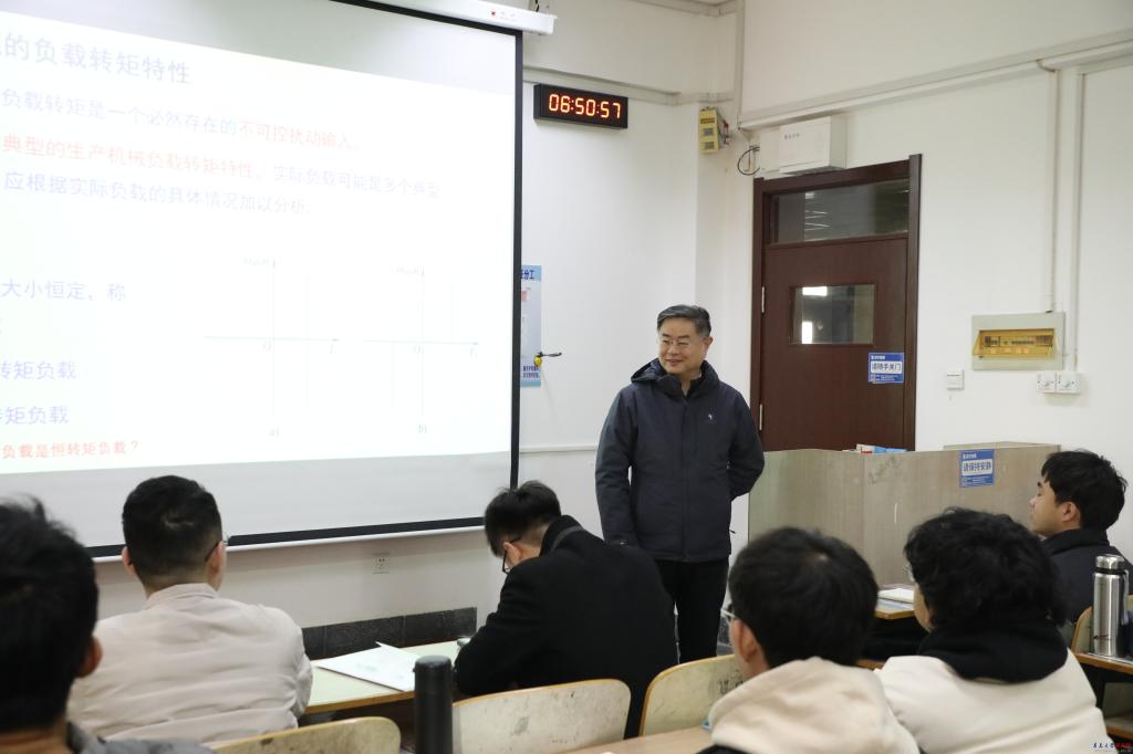 博學樓105教室,夏東偉認真聆聽電氣工程學院衣鵬老師的《電力傳動與控制》課程。