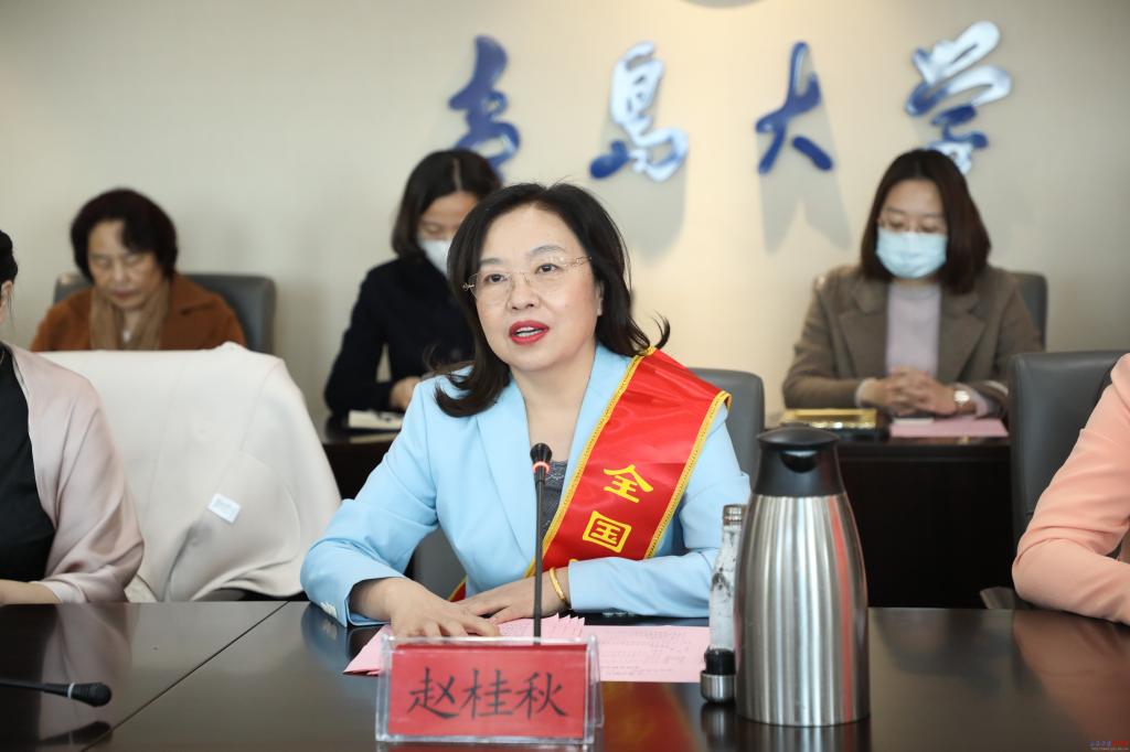會上,2021年度全國三八紅旗手趙桂秋,山東省教育系統建功立業標兵、青島市建功立業標兵崗負責人丁潔玉,青島大學三八紅旗手馬光亭、吳桐,青島市優秀黨務工作者王海榮分別發言。