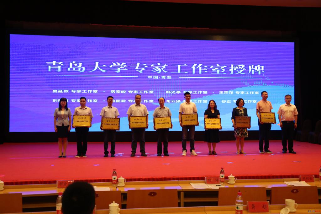 為了更好發揮青島大學的人才優勢,打造服務科技型企業的對外窗口,有針對性的與科技型企業開展專業領域的交流與合作,青島大學在本次活動中舉行8位專家工作室集中亮相,青島大學副校長劉彩云、肖江南為各位專家工作室授牌。本次活動還邀請我校牛玉生、寧新、顏冬云、王小艷等4位專家,分別就植物聲頻控制技術及應用、尼龍微納米纖維的綠色制造及相關非織造材料、糖醇螯合系列肥料的開發與應用推廣、染料創新—引領紡織產業綠色發展,進行科技成果路演活動。