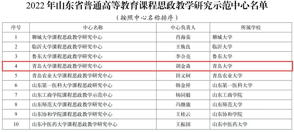 新聞網訊 近日,山東省教育廳公布了2022年省級課程思政示范項目名單,我校8個項目獲批立項,其中普通高等教育課程思政教學研究示范中心一個,普通本科教育課程思政示范課程7門。