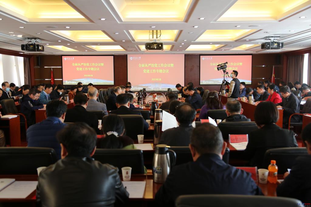 胡金焱指出,學校全面從嚴治黨和基層黨建工作還存在一些突出問題和薄弱環節,比如:對政治理論學習認識不到位、基層黨建虛化、弱化,班子隊伍建設、黨政同責、一崗雙責、履職盡責和擔當作為不平衡等問題。針對這些問題,要堅持問題導向,從“嚴”處著手、向“實”處著力,將全面從嚴治黨、黨風廉政和基層黨建工作不斷推向深處,貫穿于學校事業發展全過程各方面。他從五個方面對2023年學校全面從嚴治黨重點工作進行部署:一是以學習貫徹黨的二十大精神為主線,扎實推進黨的政治建設。要深入貫徹落實黨的二十大做出的“堅定不移全面從嚴治黨,深入推進新時代黨的建設新的偉大工程”的戰略部署,全面落實新時代黨的建設總要求,推動黨的二十大精神落實落地。要高度重視意識形態工作,全面壓實壓細意識形態工作責任制,綜合施策、高效聯動,堅決守牢意識形態主陣地。二是夯實基層基礎,增強黨組織政治功能和組織功能。要堅持大抓基層的鮮明導向,通過提升黨組織建設質量、加強干部隊伍建設、持續培先育優等途徑,推動基層黨組織全面進步全面過硬。三是堅持守正創新,打造高質量黨建文化。要堅持在規范中傳承并蓄、在實踐中總結升華、在宣傳中帶動引領,打造高質量黨建文化,實現典型引領、經驗交流和豐富黨建文化的多重目標的有機統一。四是擰緊責任“鏈條”,推進正風肅紀、懲貪治腐。要牽住責任制這個“牛鼻子”,夯實全面從嚴治黨責任,持續加強作風建設,從嚴織密監督網絡,縱深推進全面從嚴治黨貫穿辦學治校全過程各方面。五是堅持嚴管厚愛,營造干事創業的政治生態和良好環境。要處理好嚴管與厚愛的關系,注重嚴管與厚愛并重、激勵與約束相結合。嚴格紀律教育和約束,在用好“第一種形態”上下功夫,激勵干部擔當作為,大力營造風清氣正的干事氛圍。