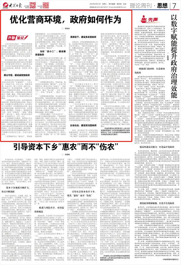 新聞網訊 3月21日,《大眾日報》刊登我校黨委書記胡金焱的理論研究文章《優化營商環境,政府如何作為》。