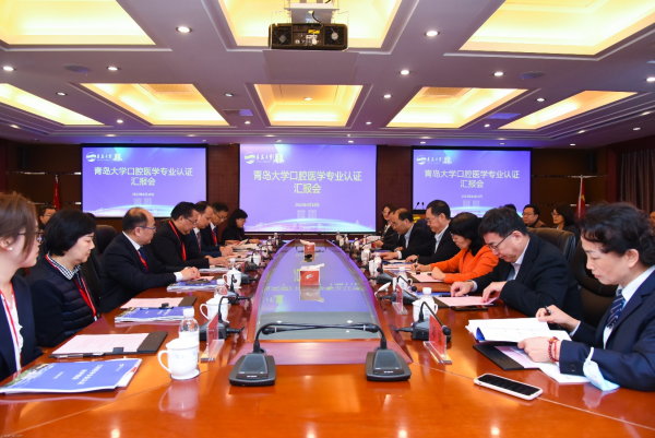 新聞網(wǎng)訊 根據(jù)教育部高等學(xué)校醫(yī)學(xué)教育專業(yè)認(rèn)證有關(guān)工作部署,4月9日至12日,以口腔醫(yī)學(xué)類專業(yè)教學(xué)指導(dǎo)委員會(huì)副主任委員、南京醫(yī)科大學(xué)原副校長王林教授為組長,口腔醫(yī)學(xué)類專業(yè)教學(xué)指導(dǎo)委員會(huì)委員、溫州醫(yī)科大學(xué)口腔醫(yī)學(xué)院、附屬口腔醫(yī)院黨委書記麻健豐教授,口腔醫(yī)學(xué)類專業(yè)教學(xué)指導(dǎo)委員會(huì)委員、福建醫(yī)科大學(xué)口腔醫(yī)學(xué)院、附屬口腔醫(yī)院黨委書記陳江教授,口腔醫(yī)學(xué)類專業(yè)教學(xué)指導(dǎo)委員會(huì)委員、寧夏醫(yī)科大學(xué)口腔醫(yī)(學(xué))院、寧夏醫(yī)科大學(xué)總醫(yī)院口腔醫(yī)院院長黃永清教授;口腔醫(yī)學(xué)類專業(yè)教學(xué)指導(dǎo)委員會(huì)委員、大連醫(yī)科大學(xué)口腔醫(yī)學(xué)院副院長、大連醫(yī)科大學(xué)附屬口腔醫(yī)院副院長牛衛(wèi)東教授,口腔醫(yī)學(xué)類專業(yè)教學(xué)指導(dǎo)委員會(huì)秘書長、四川大學(xué)華西口腔醫(yī)學(xué)院教務(wù)部部長張凌琳教授為組員,四川大學(xué)華西口腔醫(yī)學(xué)院教務(wù)部陸君卓為秘書的醫(yī)學(xué)教育專業(yè)認(rèn)證專家組(后文簡(jiǎn)稱“專家組”)一行7人,進(jìn)駐青島大學(xué),對(duì)口腔醫(yī)學(xué)專業(yè)開展為期4天的認(rèn)證考察。學(xué)校黨委書記胡金焱教授向?qū)<医M介紹了青島大學(xué)辦學(xué)歷史、辦學(xué)理念、辦學(xué)特色以及學(xué)校醫(yī)學(xué)教育發(fā)展情況。