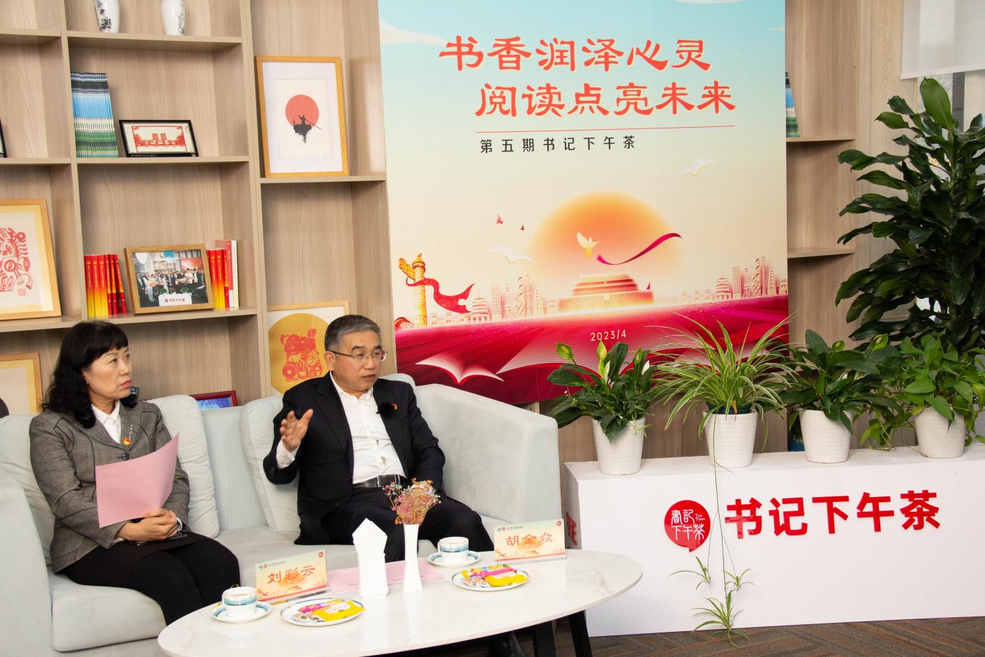 新聞網訊 4月20日下午,學校舉辦“書香潤澤心靈 閱讀點亮未來”第五期“書記下午茶”。校黨委書記胡金焱與8位不同院系不同專業的“閱讀達人”學生代表同飲下午茶,共解書中味。校黨委常委、副校長劉彩云陪同出席。