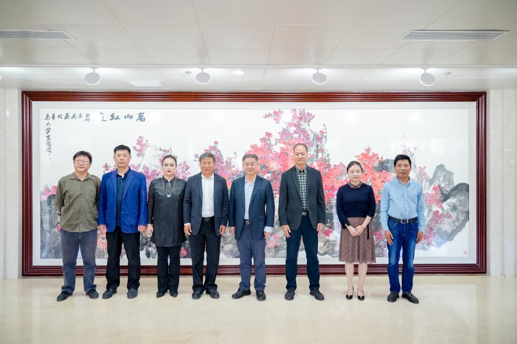 夏東偉在致辭中指出,經過合并辦學30年的融合發展,青島大學學科齊全、規模較大、發展速度快的發展態勢日趨明顯,已經成為一所享有盛譽的綜合大學,校友遍布天南地北、海內海外。王紹波教授現任青島大學美術學院院長,既是青島大學的一名教授,更是青島大學杰出的校友。在學校合并辦學30周年之際,他結合自己的切身體會,以“萬山紅遍”為主題,用映山紅表達了他對母校發展的祝福,更表達了他在母校的培養下,從學生成長為二級教授的特殊感情。夏東偉對作品《萬山紅遍》給予了高度評價。他表示,《萬山紅遍》作品面積達123平方尺,創作過程一氣呵成,體現了王紹波院長扎實的功底和精湛的藝術手法,也體現了王紹波教授精益求精、永無止境的奮斗精神。這種拼搏奮斗精神值得每一名青大人學習,共同為青島大學“三步走”的奮斗目標努力奮斗。
