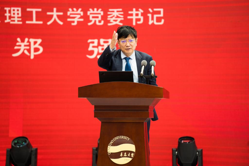 夏東偉作題為《大道同行三十載逐夢奮進新征程》的學校創新發展報告。他說,作為國家改革開放以來首批合并辦學的高校,三十年來,青大人始終心懷“國之大者”,教授高深學問,養成碩學宏才,應國家之需要,繪就了一幅開拓進取、奮勇爭先的恢弘畫卷,在中國高等教育改革創新發展史上,寫下了濃重的一筆。面向未來,青島大學已開啟全面建設高水平綜合性研究型大學的新征程。要始終堅守為黨育人、為國育才的初心和使命,落實立德樹人根本任務,努力培養堪當民族復興大任的時代新人;要牢固樹立“人才是第一資源”的理念,堅持人才強校戰略,造就一支師德高尚、業務精湛、結構合理、充滿活力的教師隊伍;要加快實施學科集群和學科交叉融合發展戰略,堅持高質量發展,早日實現國家一流學科的突破;要堅持“四個面向”,深化校地融合,擦亮醫療、紡織、教育、文化創意等服務地方的“金字招牌”,把論文寫在祖國大地上、寫在齊魯沃土中,寫在青島山海間;要堅守大學精神,建設大學文化,努力成為推動社會發展的重要力量、守護人類命運共同體的堅強陣地。站在新的起點,青大人將不忘初心,牢記使命,逐夢奮進新征程,秉持“明德、博學、守正、出奇”的校訓精神,為建成在國內外有較大影響的一流大學而不懈奮斗。為全面建設社會主義現代化強國、全面推進中華民族偉大復興做出青大貢獻。