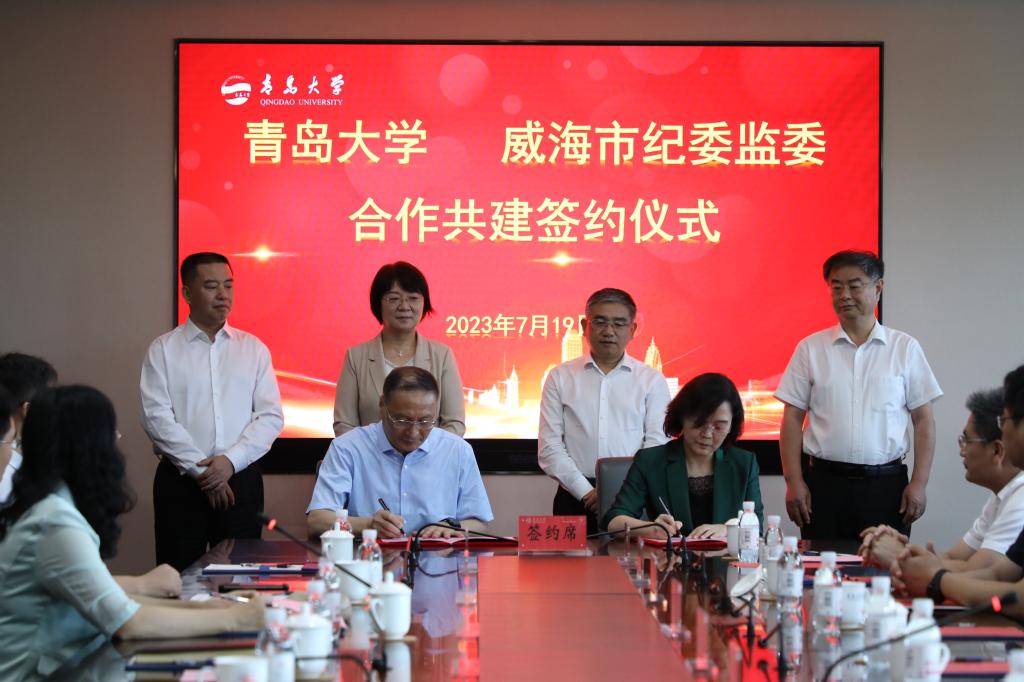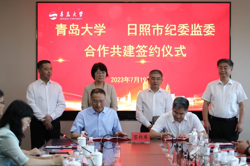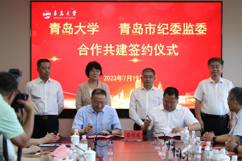 儀式上,夏東偉代表青島大學與省紀檢監察干部培訓學院簽署戰略合作協議,范玉斌代表青島大學同青島、東營、煙臺、威海、日照等五市紀委監委主要負責同志簽署合作共建協議。山東省紀委監委和青島大學主要負責同志為青島大學紀檢監察學院揭牌。