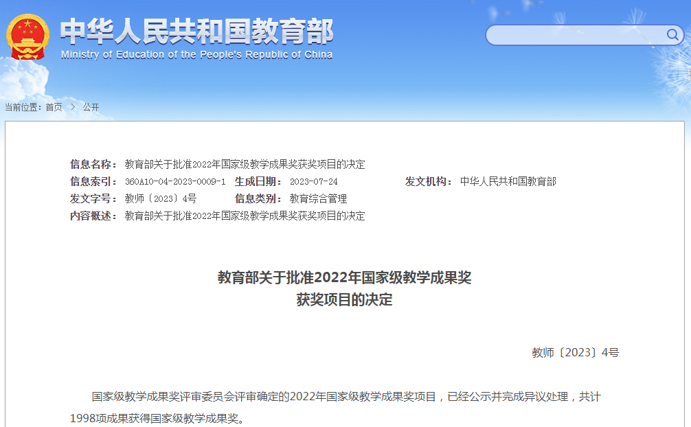 新聞網訊 7月24日,教育部發布了《教育部關于批準2022年國家級教學成果獎獲獎項目的決定》,作為主持單位我校共2項成果上榜,獲獎數量位列山東省省屬高校第一,取得新突破。