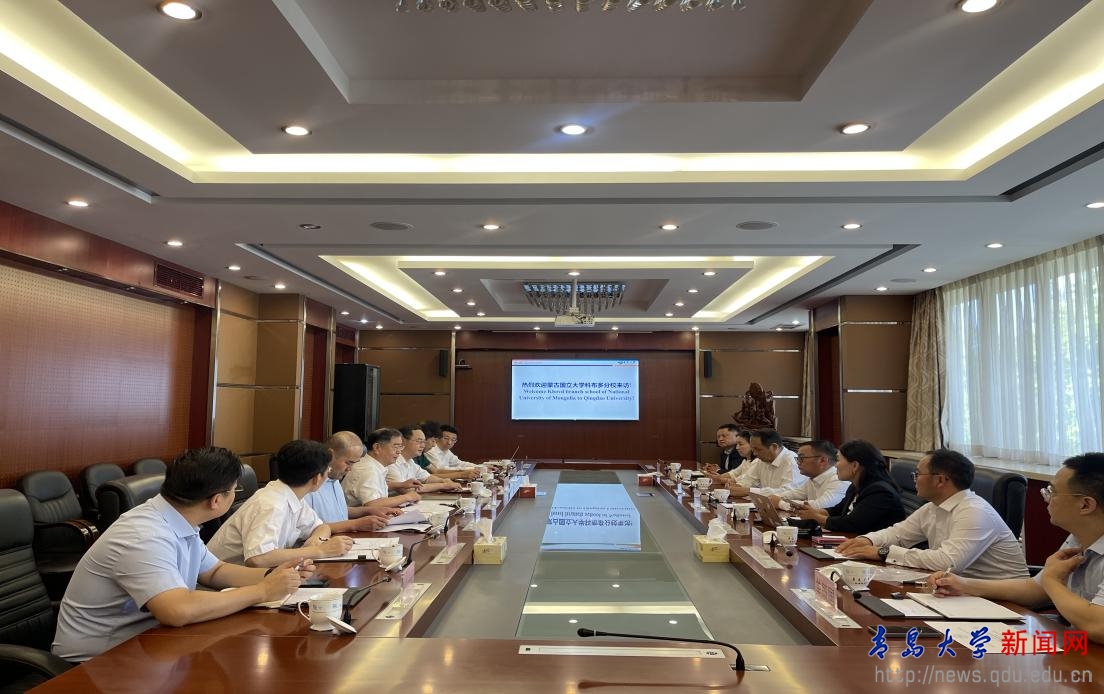 夏東偉對代表團來訪表示熱烈歡迎,他簡要介紹了青島市和青島大學基本情況和發展概況。他表示,青島是中國北方GDP排名第三的城市,擁有海爾、海信、青啤等世界知名的品牌,是中國重要的制造業基地。青島大學堅持服務青島經濟和社會發展,將學校的學科專業整合成醫學與生命健康、紡織與先進材料、新一代信息技術、師范教育、文化創意、新能源和經濟管理與社會治理創新等七大學科集群。他指出,兩校在師生交流、合作辦學、學生培養、上合組織國家區域國別研究等領域均有非常廣闊的合作前景,蒙古國立大學科布多分校前身為科布多國家師范學院,師范教育專業同時也是青島大學的優勢學科,希望未來兩校可以加深包括師范教育在內的各學科領域合作,實現互利共贏,共同發展。
