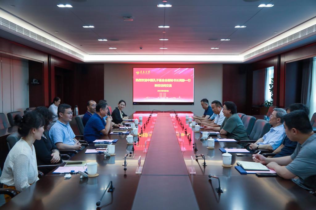 新聞網訊 9月3日,中國孔子基金會副秘書長周靜、省紀委監委駐省發展改革委紀檢監察組李偉、團省委社會聯合部苗翠光、省政府駐新疆辦事處石袖、青島市人大常委會原副主任孔心田、山東大學青島校區黨工委書記孔令棟、青島市孔子文化交流協會秘書處劉岑等一行來我校訪問交流。校長夏東偉會見并座談,校黨委常委、副校長孔偉金陪同會見。