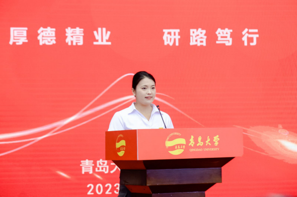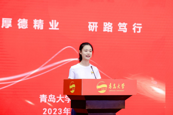 新生代表、2023級馬克思主義學院碩士研究生李子淇表示青島大學是研究生旅途的起點,在“研”途中要擔起時代重任,攜手并進,做追夢筑夢、勇于擔當的青年,向上生長、綻放光芒。