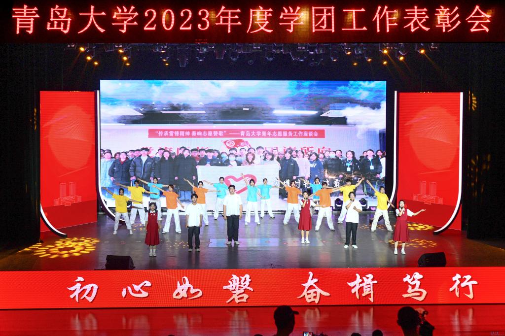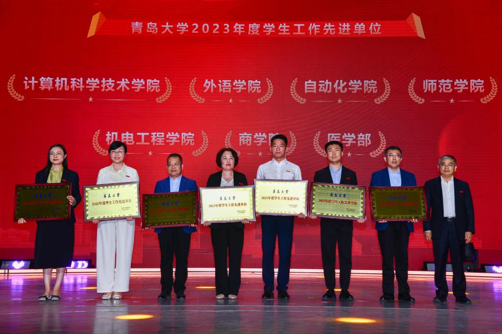 新聞網訊 5月16日下午,青島大學2023年度學團工作表彰會在青大劇院隆重舉行,校領導胡金焱、魏志強、肖江南、胡欽曉、陳濤、李榮貴、劉恩賢、何燕、徐大連出席表彰會并頒獎。