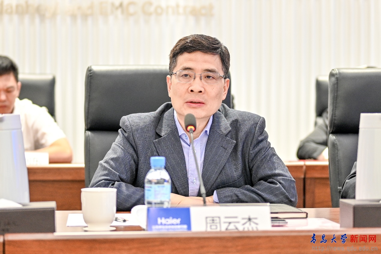 周云杰對青島大學一行表示熱烈歡迎。他表示海爾品牌誕生40周年以來,始終堅持科技自立自強,聚力突破行業原創性、關鍵性技術,以科技創新推動產業升級,引領全球產業發展趨勢,目前集團主要業務聚焦于智慧住居、大健康和工業互聯網三個領域。海爾在科技研發上持續投入,期待與青島大學開展全方位合作。海爾集團與青島大學作為各自領域的佼佼者,擁有極強的資源互補性,雙方已在科學研究和人才交流等多個關鍵領域建立起堅實的合作基礎。周云杰深信,海爾集團與青島大學的合作具備“天時地利人和”的優越條件,擁有廣闊的合作空間,具有校企合作示范意義。他期盼雙方在未來合作中,探索形成產學研深度融合新模式,加速產業成果轉化和孵化,更好的培養適應新時代高科技人才,打造產學研用一體化新生態,支持青島市國際化大都市建設。他堅信雙方的合作必將實現互利共贏,再上新臺階,為地方經濟的繁榮與發展注入新的活力。