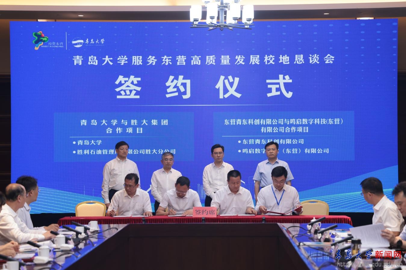 在胡金焱、魏志強(qiáng)、陳必昌、何憲卓見證下,雙方舉行了“共建青島大學(xué)科創(chuàng)中心及孵化基地項(xiàng)目”、“青島大學(xué)與勝大集團(tuán)合作協(xié)議”、“東營青東科創(chuàng)有限公司與東營高新技術(shù)產(chǎn)業(yè)開發(fā)區(qū)管理委員會(huì)共建青島大學(xué)東營研究院合作協(xié)議”、“青島大學(xué)與東營職業(yè)學(xué)院科研成果轉(zhuǎn)化合作協(xié)議”、“青島大學(xué)生命科學(xué)學(xué)院與勝利石油管理局有限公司勝大分公司合作協(xié)議”等項(xiàng)目和協(xié)議的簽署。
