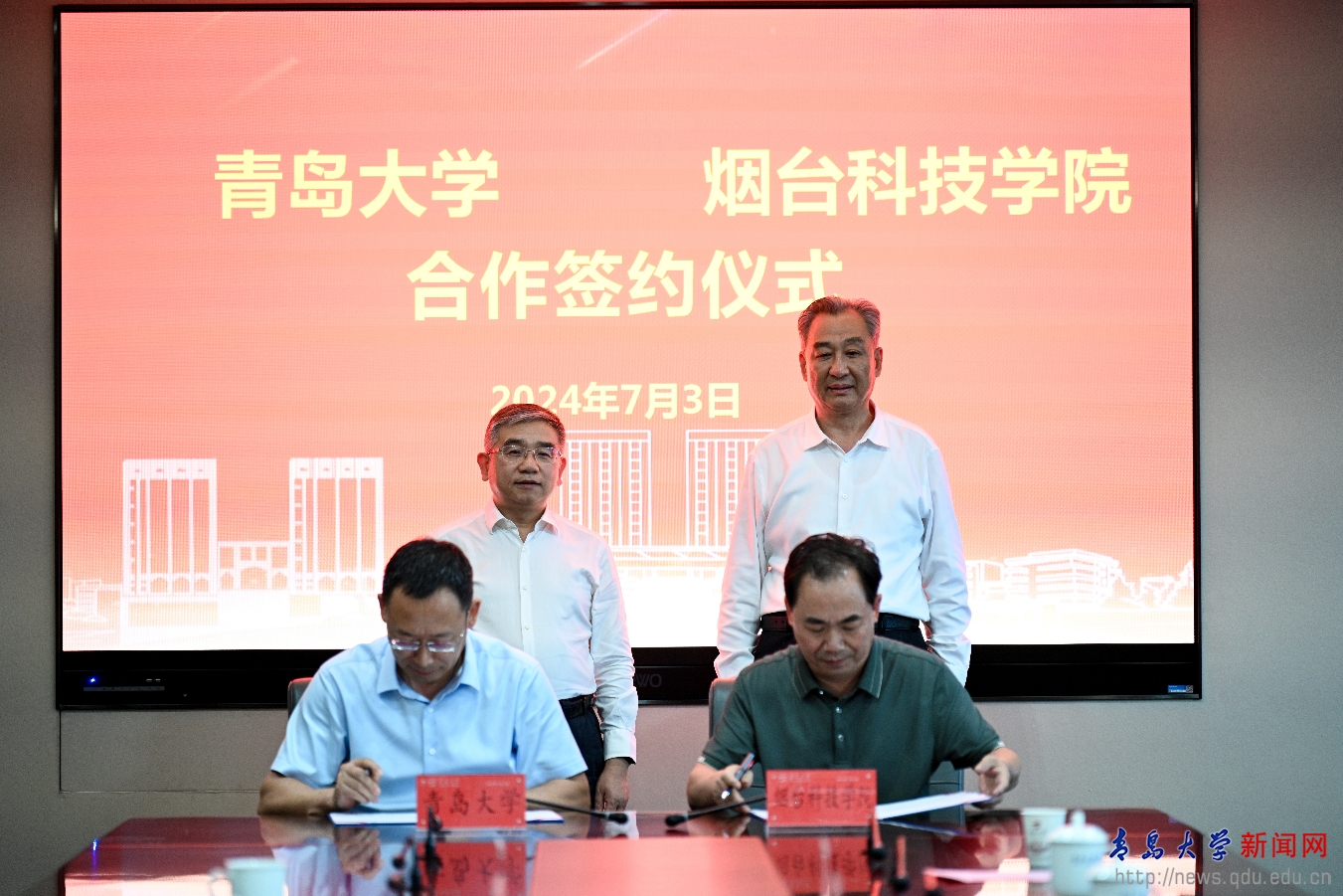 新聞網(wǎng)訊 7月3日下午,我校與煙臺科技學院合作協(xié)議簽約儀式在會議中心致遠廳舉行。煙臺科技學院黨委書記、省政府派駐督導專員王少鵬,黨委副書記、副校長郭迎昌,副校長王鳳麗,我校黨委書記胡金焱,黨委常委、副校長劉恩賢出席簽約活動。簽約儀式由劉恩賢主持。