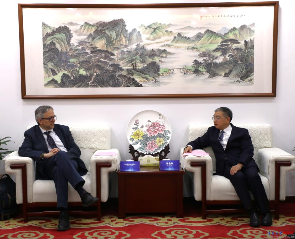 胡金焱在辦公樓320會(huì)客室會(huì)見了烏拉圭共和國大學(xué)校長(zhǎng)羅德里戈·阿里姆,古巴哈瓦那大學(xué)對(duì)外西語系主任莉迪亞·庫巴、制藥與食品學(xué)院院長(zhǎng)阿莉西亞·卡薩里埃戈和國際處副處長(zhǎng)英迪拉·費(fèi)雷爾。