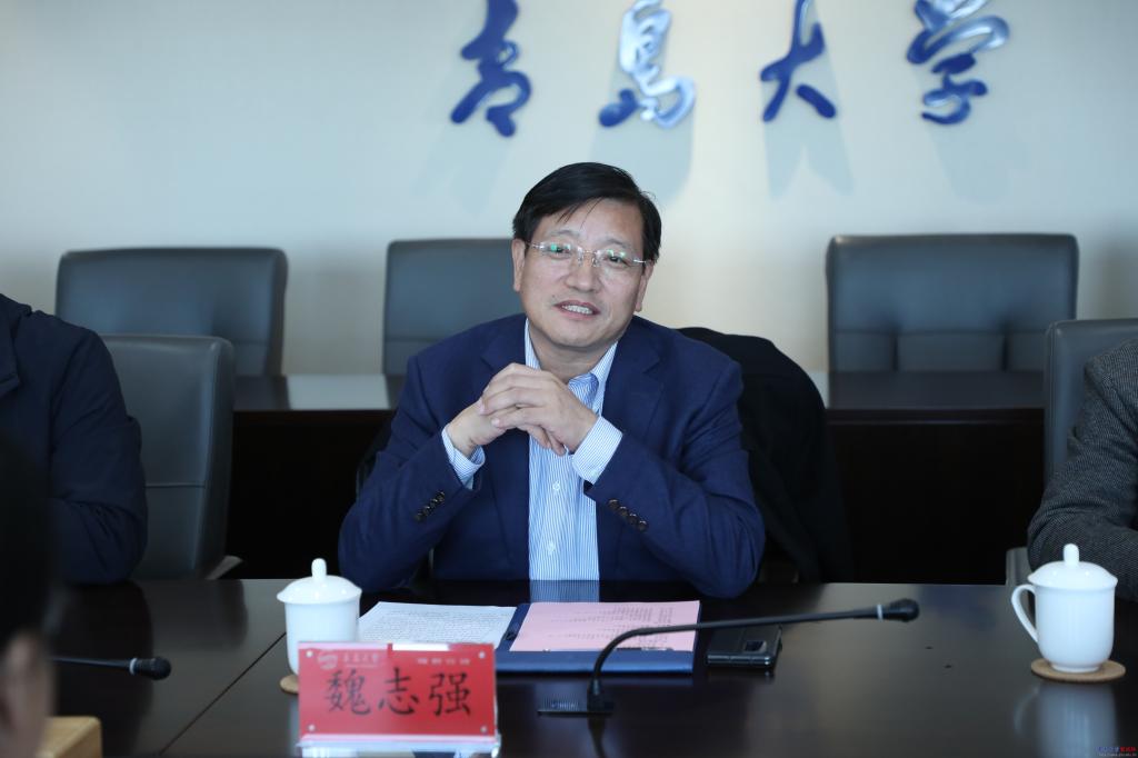 魏志強代表學校對韋仕珍一行來校調研交流表示熱烈歡迎,他簡要介紹了我校歷史沿革以及在學科建設、人才培養、社會服務、國際化辦學等方面的發展情況及取得的成果。他表示,廣西民族大學具有鮮明的民族特色和深厚的文化底蘊,希望以此次交流為契機,促進兩校在學科交叉融合、特色專業建設、教育國際化等方面資源與經驗的雙向共享,攜手并進,助推兩校高質量發展。