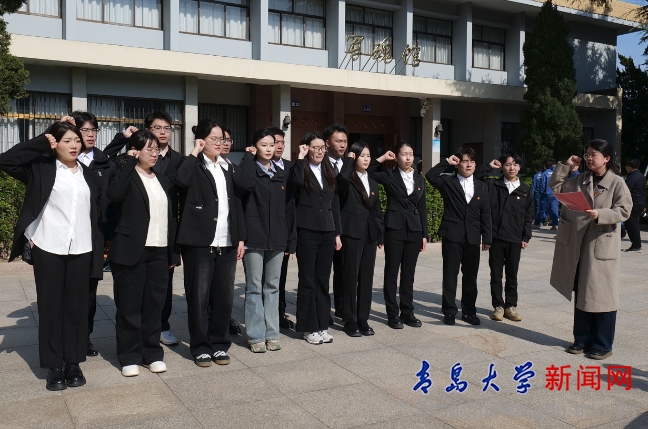 外語學院學生黨員和學生干部代表前往青島革命烈士紀念館開展清明祭掃主題教育活動。全體同學列隊肅立,齊聲歌唱中華人民共和國國歌,并全場默哀三分鐘。儀式后,學生們走進革命烈士紀念館參觀學習,激勵青年學子以語言為橋傳遞中國精神,用行動踐行“強國有我”的青春誓言。
