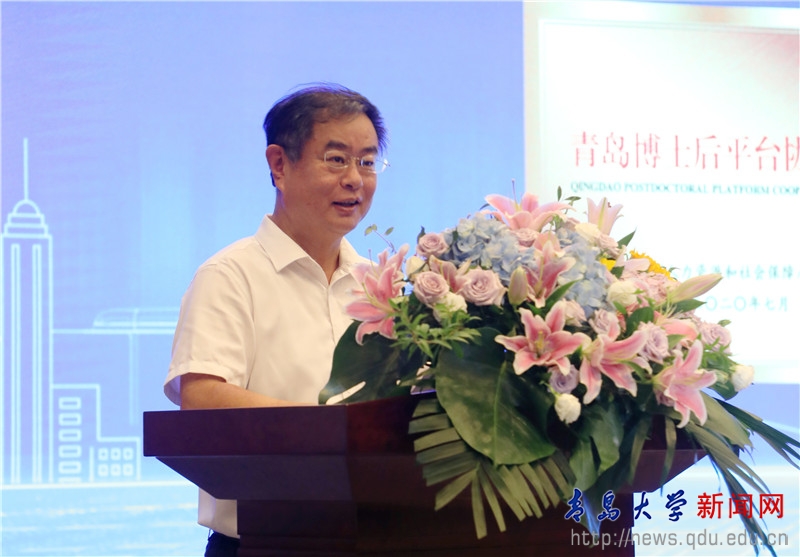 夏東偉在致辭中說,青島博士后平臺協作聯盟的成立,是進一步促進博士后研創合作,服務城市發展的具體行動。作為聯盟理事長單位,青島大學將不負所托,充分利用學校交通便利、交流平臺充分等優越條件,帶領理事會和各成員單位,通過有計劃、有組織的聯誼與活動,促進平臺之間進一步加強交流與合作,打造“跨部門、跨行業、開放型”的合作平臺,讓各種要素合理流動、自由組合,共享要素資源,贏得整體優勢,促進青島市博士后事業快速發展,將博士后人才的智力轉化城市發展的動力,為青島科技進步和經濟社會發展,為山東全面推動新舊動能轉換,做出更大貢獻。