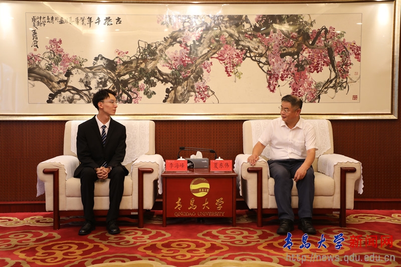 新聞網訊 8月21日下午,校長夏東偉在辦公樓204接待室接見我校參加全國學聯第二十七次代表大會代表李海峰同學,并同他親切會談。