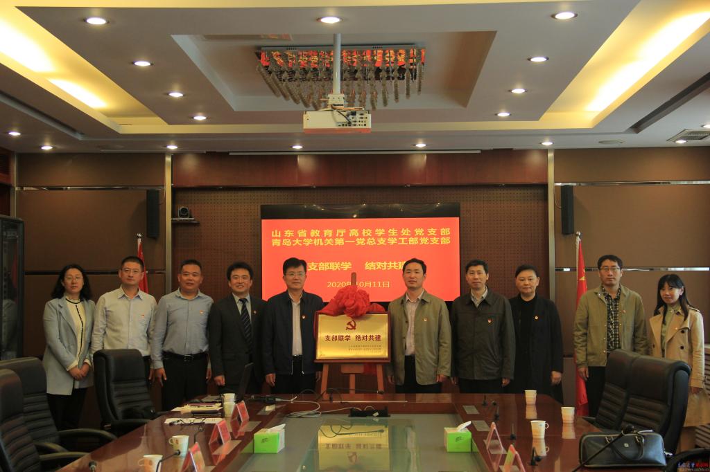 新聞網(wǎng)訊 10月11日上午,山東省教育廳高校學(xué)生處黨支部與我校校部機(jī)關(guān)第一黨總支學(xué)工部黨支部“支部聯(lián)學(xué)、結(jié)對共建"啟動儀式在辦公樓201會議室舉行。山東省教育廳高校學(xué)生處處長李存嶺、青島市教育局教師工作處(人事處)處長王元泳、校黨委常委、組織部部長、校部機(jī)關(guān)黨委書記徐龍飛出席啟動儀式。校黨委常委、副校長劉彩云陪同調(diào)研。