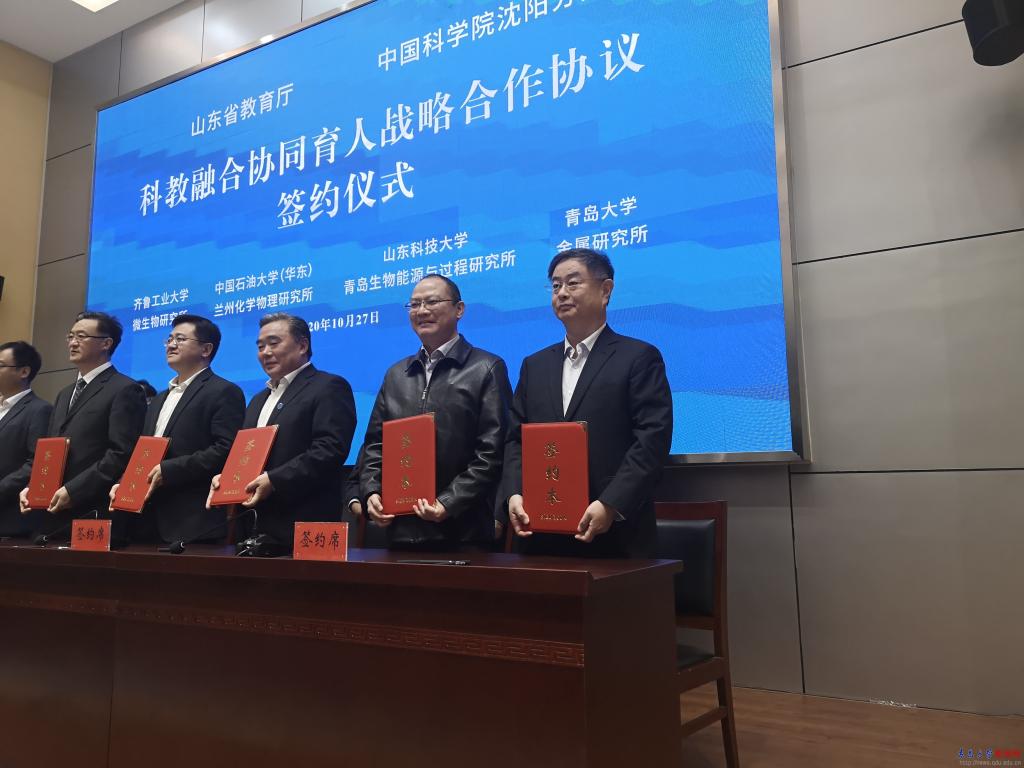 新聞網訊 10月27日,山東省教育廳與中國科學院沈陽分院等單位舉行科教融合、協同育人戰略合作協議簽約儀式。我校校長夏東偉參加簽約儀式并作交流發言。
