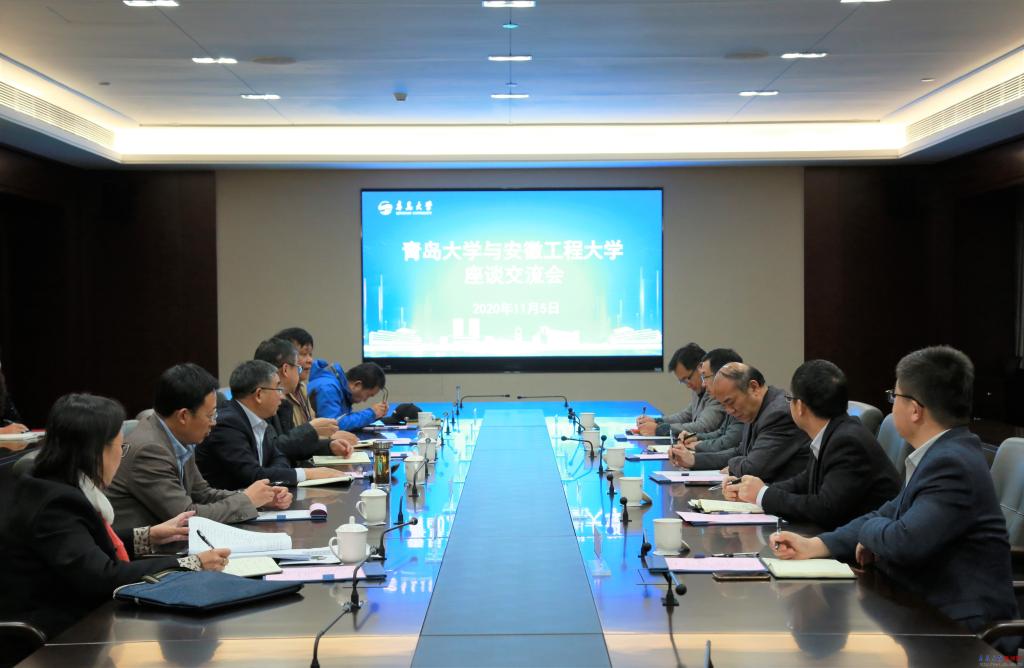 費為銀對青島大學取得的成績表示祝賀,并介紹了安徽工程大學在人才隊伍建設等方面的主要做法,希望更加深入了解借鑒學校的建設與發展經驗,不斷加強交流合作,加快推進安徽工程大學快速發展。