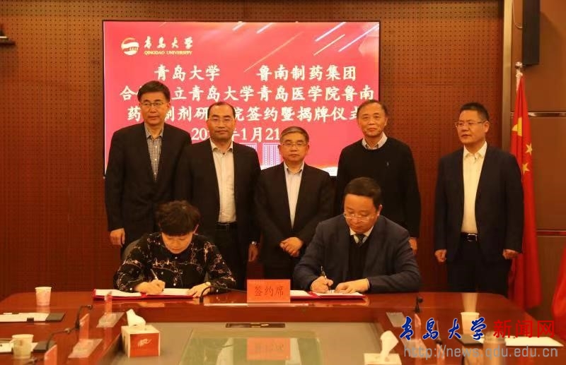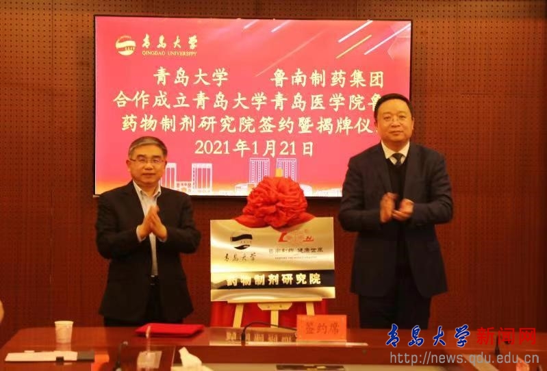 新聞網(wǎng)訊 1月21日下午,青島大學(xué)與魯南制藥集團(tuán)合作成立青島大學(xué)青島醫(yī)學(xué)院魯南藥物制劑研究院簽約暨揭牌儀式在學(xué)校舉行。校黨委書記胡金焱與魯南制藥集團(tuán)黨委書記、董事長、總經(jīng)理張貴民出席儀式。簽約揭牌儀式由校黨委常委、副校長孔偉金主持。