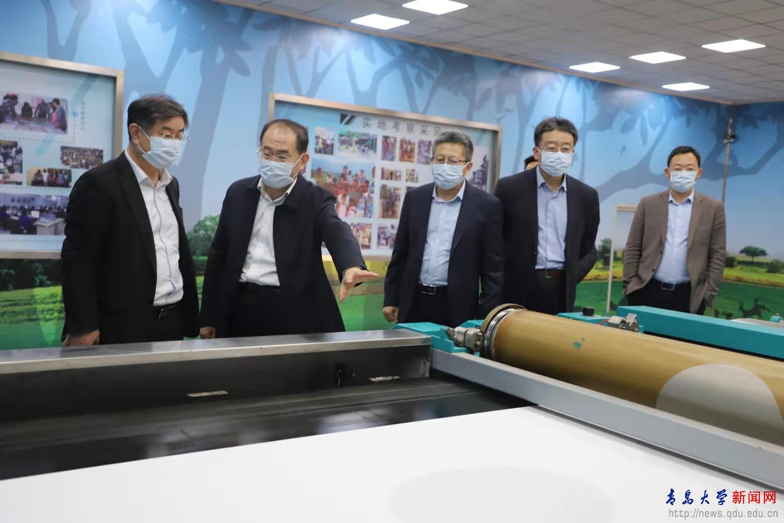 愉悅家紡董事長劉曰興、濱州市科技局局長孫學森陪同考察。校黨委辦公室、校長辦公室,科技處負責人參加考察。