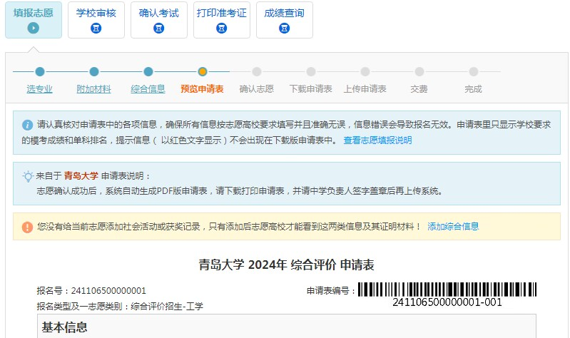 4.青島大學綜合評價招生申請表(系統設置為非必填項,但必須上傳)
