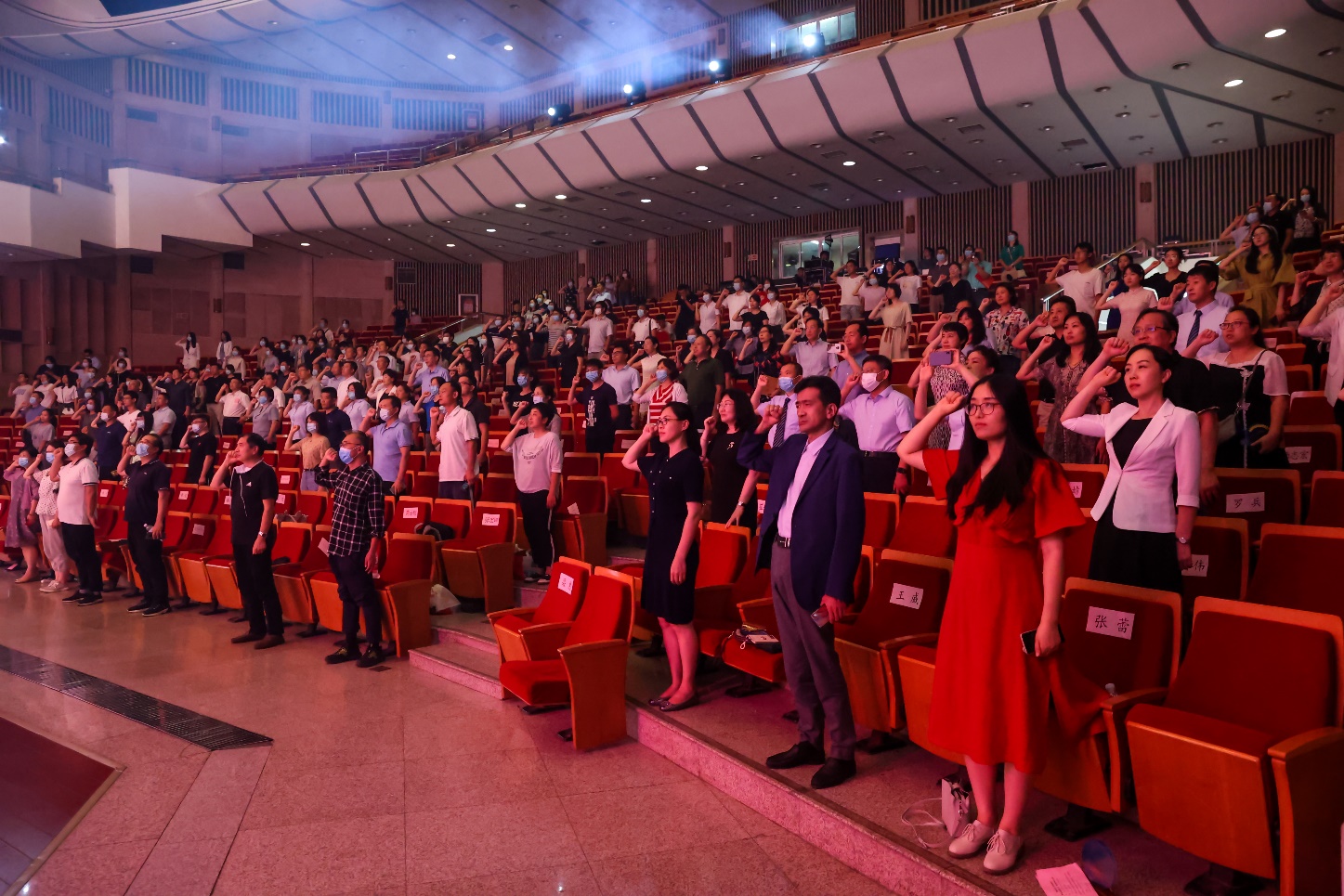 會議最后,由金立新教授領(lǐng)誓,帶領(lǐng)10位新入職教師代表及在場全體教師宣讀青島大學醫(yī)學教師誓詞,廣大教師在雄渾有力的誓言聲中再次堅定育德育人的師心。