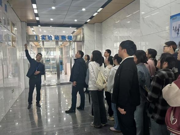 抵達企業后,滕潤翔檢測評價有限公司行政負責人江松林熱情接待了我院師生,并引導大家參觀企業環境。先進的檢測設備、規范的實驗室管理以及嚴謹的工作氛圍,讓師生們對藥學檢測評價行業有了更為直觀和深入的認識。參觀過程中,學生們表現出濃厚的興趣和強烈的求知欲,紛紛表示此行受益匪淺。