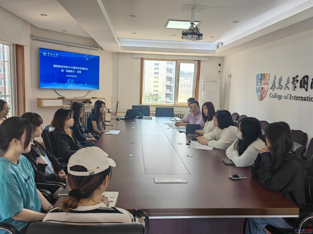 新聞網(wǎng)訊 5月28日,國際教育學(xué)院在敏行樓五樓會(huì)議室舉辦2025屆畢業(yè)生座談會(huì)暨“清廉青大”廉潔黨課。大會(huì)由學(xué)院副院長孫瑩主持,全體畢業(yè)生參加會(huì)議。