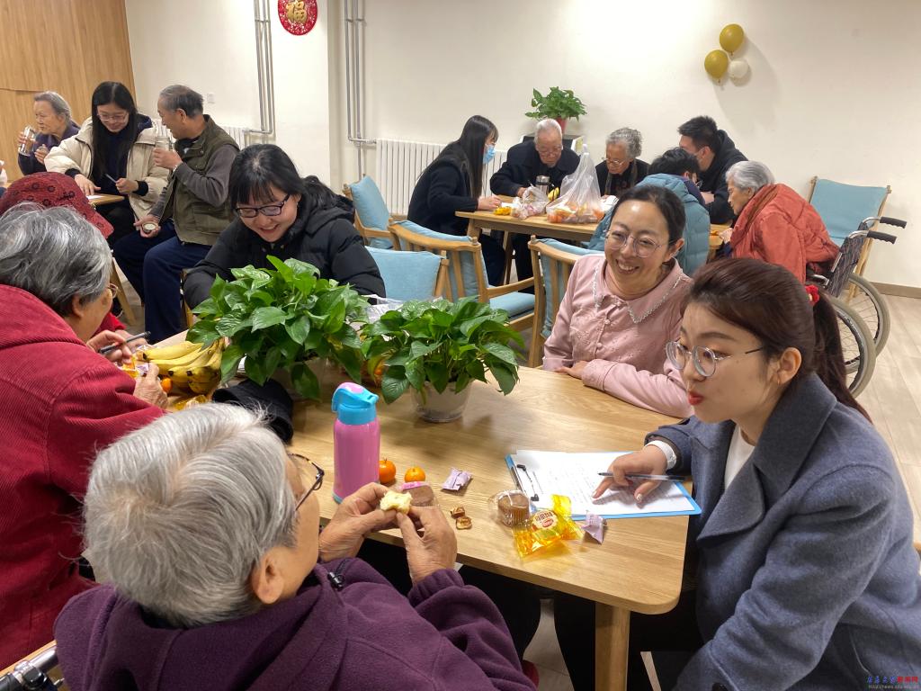 活動中,同學們分成幾組與老人們團團圍坐在一起,親切的陪伴老人聊天談心,同時還為老人們普及了認知癥的相關知識,以醫學生的專業知識和專業態度熱情為老人們服務,兩代人交談甚歡,其樂融融。
