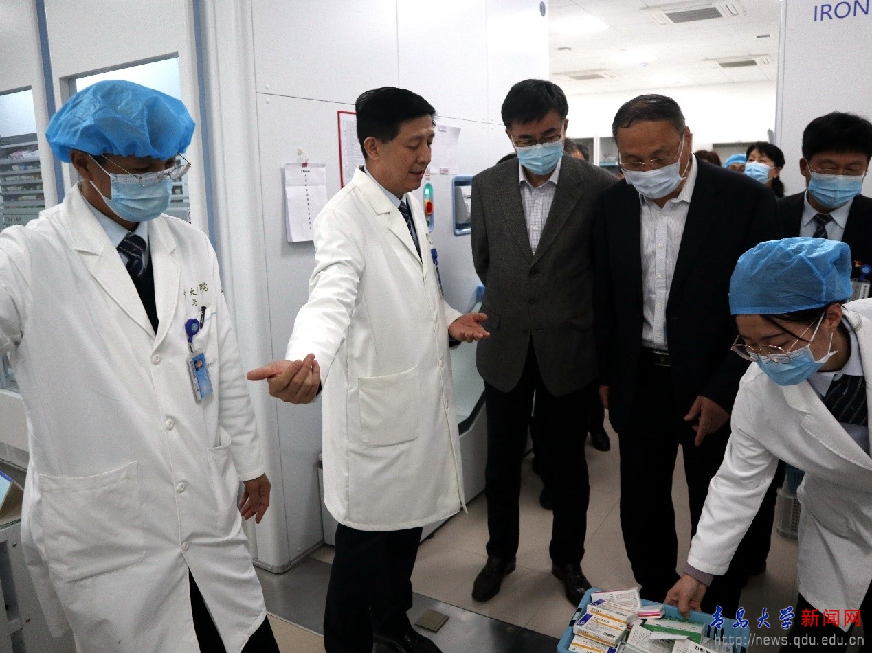 范玉斌一行先后到門診藥劑科、急診、心血管內(nèi)科病房、ICU、檢驗(yàn)科和健康管理中心等實(shí)地查看了科室工作情況,現(xiàn)場(chǎng)慰問(wèn)醫(yī)務(wù)人員,與醫(yī)務(wù)人員合影留念。在院史館,調(diào)研組認(rèn)真觀看資料,詳細(xì)了解了附屬醫(yī)院的歷史和黨建工作。張國(guó)慶詳細(xì)介紹了院區(qū)運(yùn)行情況和相關(guān)科室的工作情況。