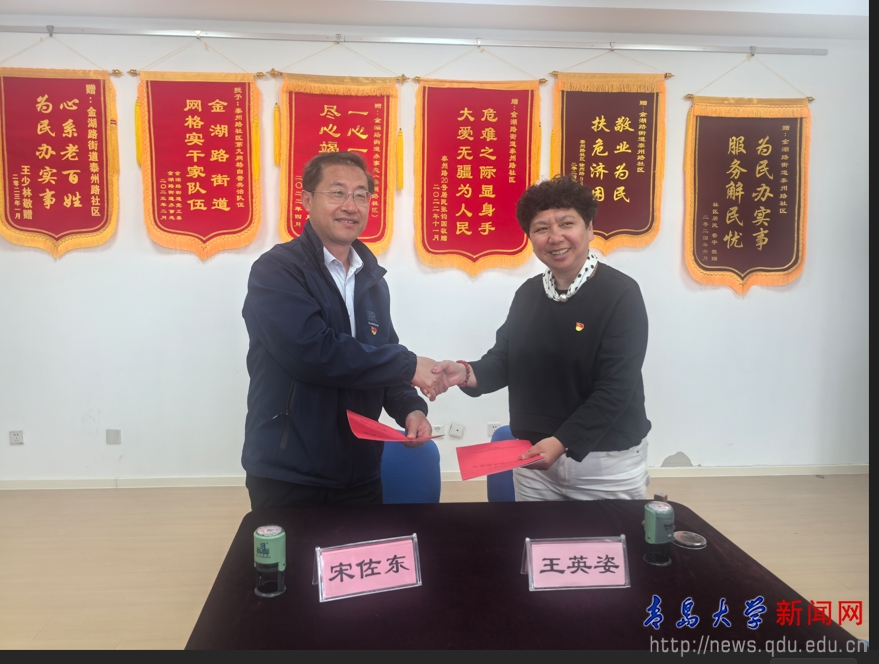 新聞網訊 4月22日上午,青島大學離退休黨委與市南區泰州路社區黨委簽署“紅色合伙人”共建協議。離退休黨委書記、處長宋佐東,泰州路社區黨委副書記、居委會主任王英姿,社區掛職干部、市南區財政局二級調研員王書春參加簽約儀式。