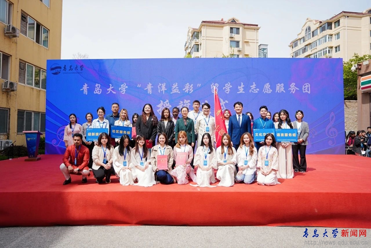 開(kāi)幕式上,青島大學(xué)首屆留學(xué)生志愿者團(tuán)隊(duì)——“青洋益彩” 留學(xué)生志愿服務(wù)團(tuán)正式成立。黨委常委、副校長(zhǎng)何燕為團(tuán)隊(duì)授旗,國(guó)際教育學(xué)院黨委書記紀(jì)皓瑛、院長(zhǎng)周允旭為團(tuán)隊(duì)指導(dǎo)教師和志愿者代表頒發(fā)聘書。留學(xué)生志愿者團(tuán)隊(duì)團(tuán)長(zhǎng)馮光河成發(fā)言時(shí)表示,團(tuán)隊(duì)成員懷揣公益熱忱與文化交流向往,未來(lái)將通過(guò)開(kāi)展語(yǔ)言服務(wù)、文化交流等多元活動(dòng),促進(jìn)中外人文交流,為青島國(guó)際化建設(shè)貢獻(xiàn)青春力量。